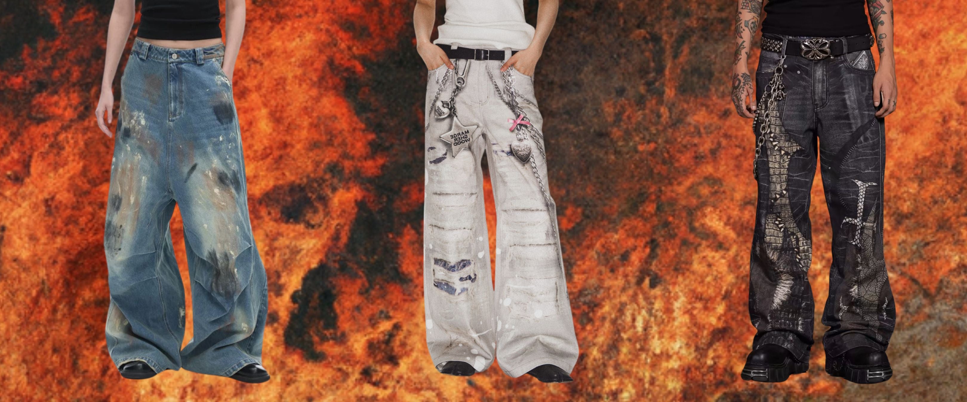 Y2K Harajuku Style Washed Denim Wide Leg Bell Bottom Pants [ID:0404PA]