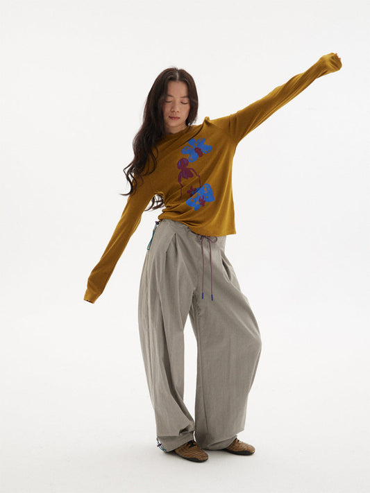 2024 New Vintage Wide-Leg Flared Relaxed Trousers with Oriental Aesthetic [ID:0082PA]