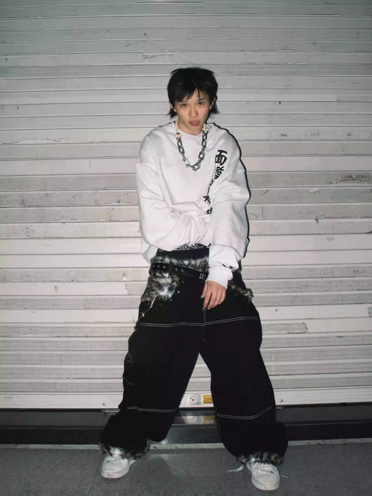 Taiji Dual Serpent Leopard Print Oldschool Skate Denim Pants [ID:0478PA]