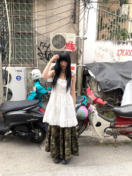 Vintage Distressed Edge Camouflage Skirt [ID:0432SK]