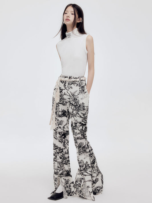 Genesis Vintage Floral Print High-Stretch Flare Pants Retro Chic [ID:0073PA]
