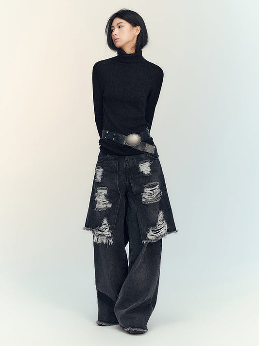 Genesis Era Washed Distressed High-Waist Loose Straight-Leg Denim [ID:0074PA]