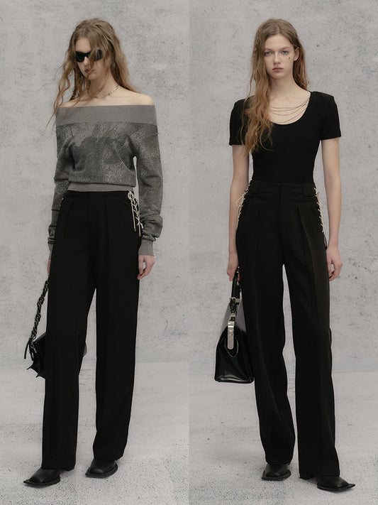 Antique Butterfly Bow Accessory Wide-Leg Slacks Pants [ID:0012PA]