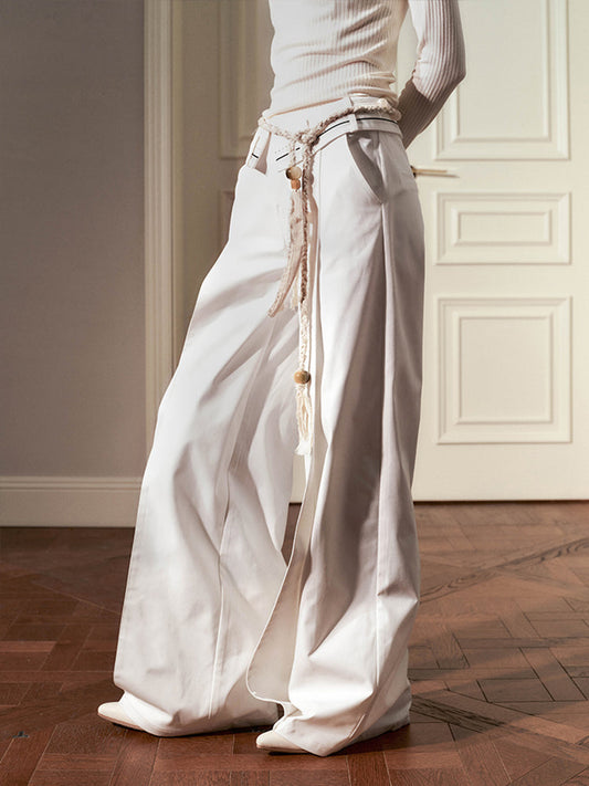 Genesis Era Mid-Waist Straight-Leg Tie-Belt Draped Casual Trousers [ID:0075PA]