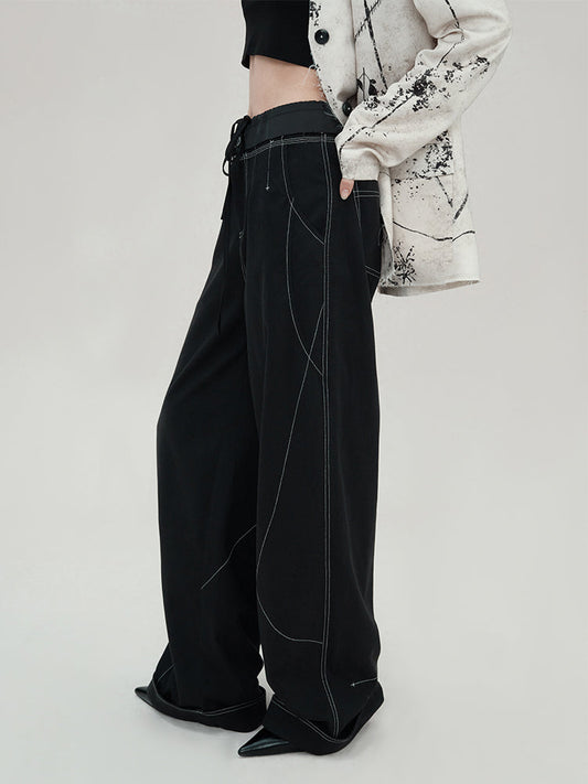 Genesis Era Contrast Panel Wide-Leg High-Waist Relaxed Black Trousers [ID:0078PA]