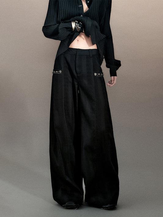 Genesis Era Capsule Collection Willow Pleat Wide-Leg Relaxed Trousers [ID:0079PA]