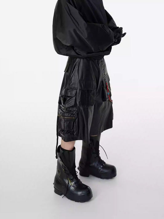 Waxed Coated with Multi-Pocket Zip Design Tactical Cargo Shorts [ID:0466PA]