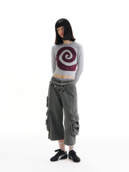 Mist Blue Mid-Low Rise 7/8 Cargo Utility Pants [ID:0213PA]