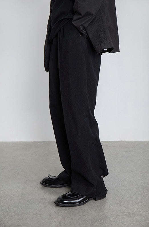 Texture Rivet Loose Leaf Split Loose Casual Scimitar Curve Black Pants [ID:0118PA]
