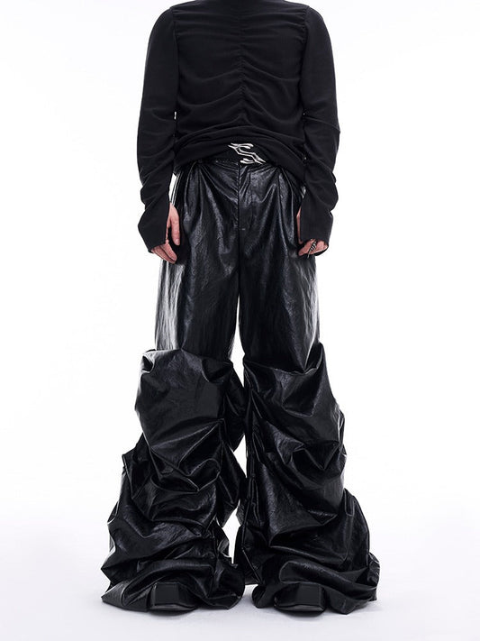 Unique Pleated Wide-Leg Leather Pants [ID:0222PA]