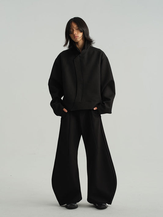 Two-Tone Curved-Leg Wide Tailored Pants [ID:0288PA]