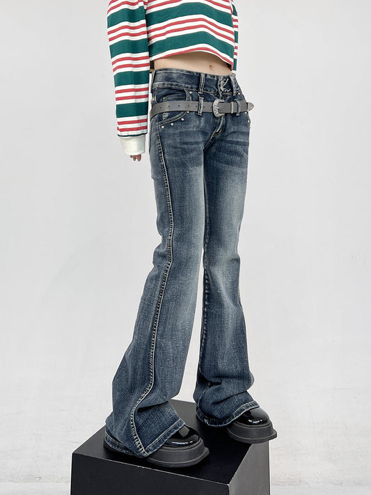 Distressed Stamp Slim Retro Niche Bootcut Jeans [ID:0170PA]
