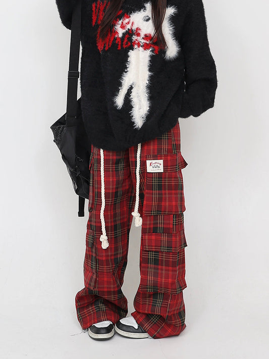 Retro Loose Lazy Style Pants with Multi-Pocket Drawstring Overalls [ID:0166PA]