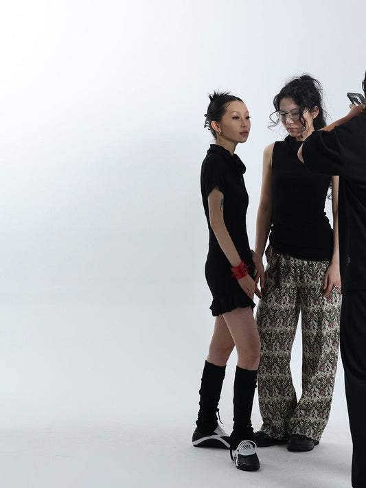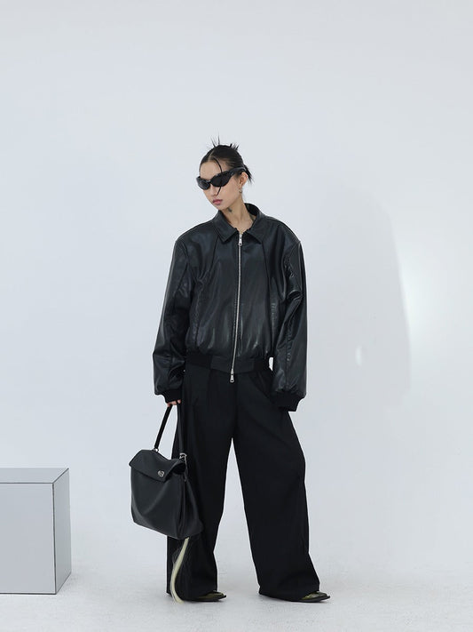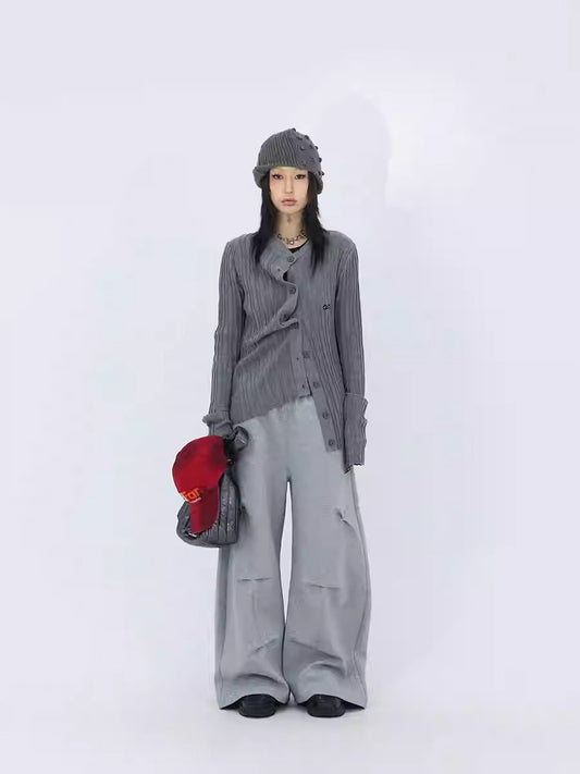 Streamlined Pleats Air Cotton Oversized Curved Pleated Sweat pants [ID:0242PA]