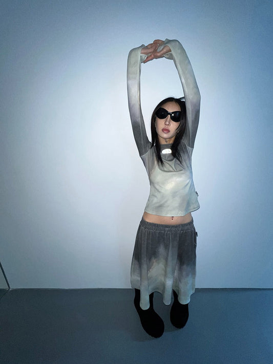 Lava Gray Faded Print Brushed Long-Sleeve and Skirt [ID:0231SU]