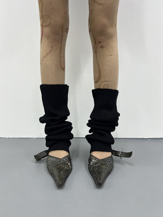 Subculture-Inspired Wool Blend Knitted Layered Leg Socks [ID:0234OT]