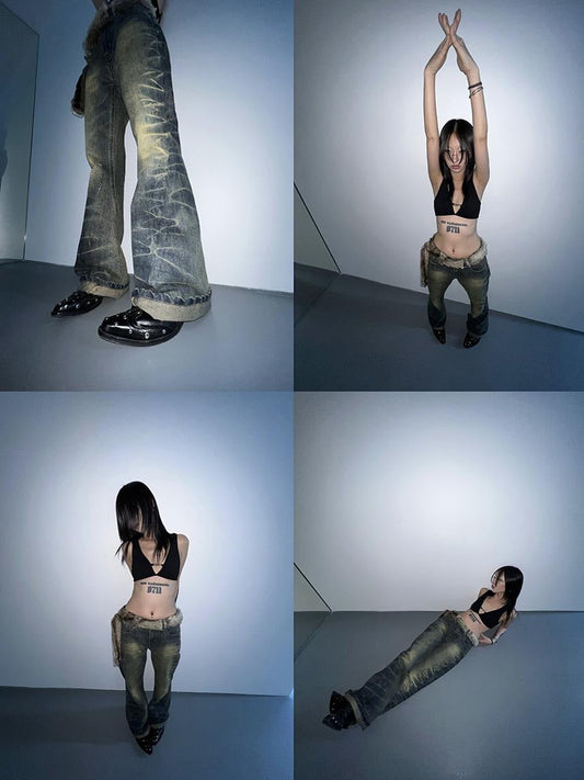 Vintage Hand-Pleated Washed Flare Denim Pants [ID:0235PA]