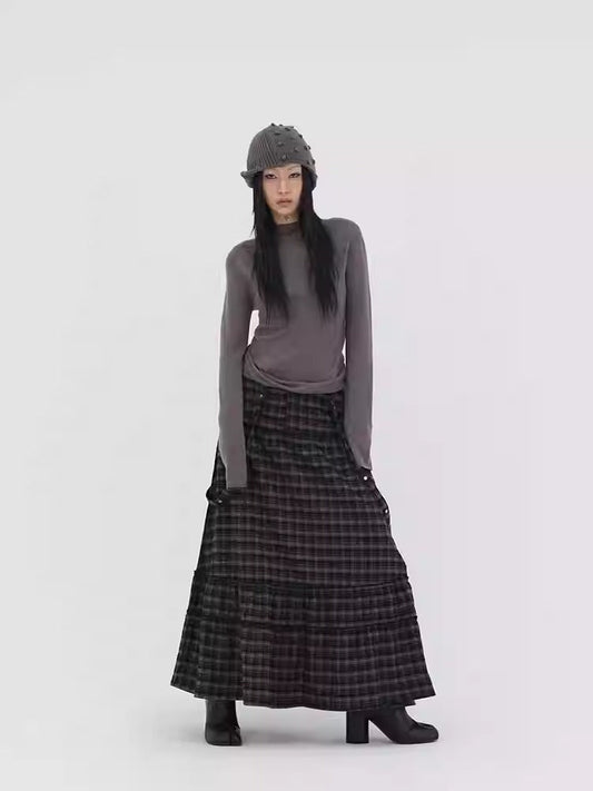 Vintage Plaid A-Line Frilled Soft Brushed Skirt [ID:0238SK]