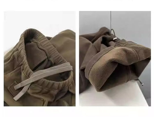 Curved-Cut Drawstring Fleece Wide Banana Pants [ID:0239PA]