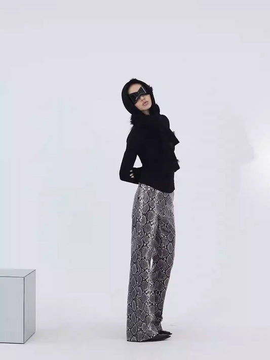 Retro Slimming Snake Print Faux Leather Micro-Flare Pants [ID:0241PA]
