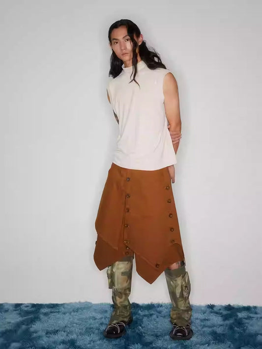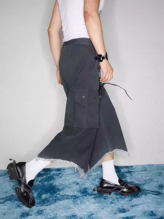 Vintage Y2K Button Deconstructed Capri Skirt Pants [ID:0402PA]