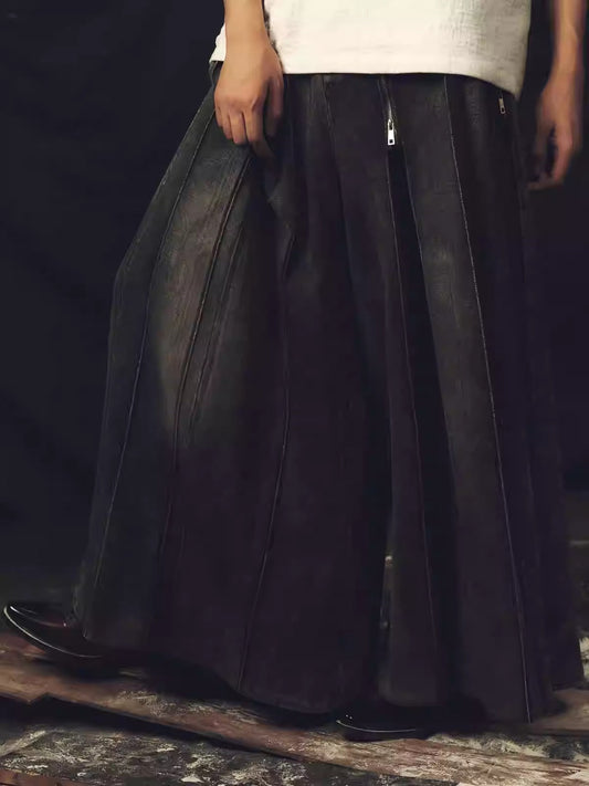 Original Harajuku Style Multi-Zip Pleated Wide Leg Denim Pants [ID:0405PA]