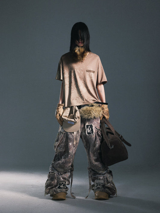 Washed Branch Camo Multi-Pocket Cargo Denim Pants [ID:0504PA]