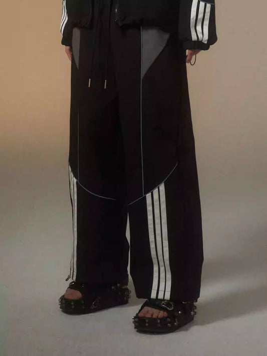 American Autumn Stripe Splicing Straight Unisex Pants [ID:0042PA]