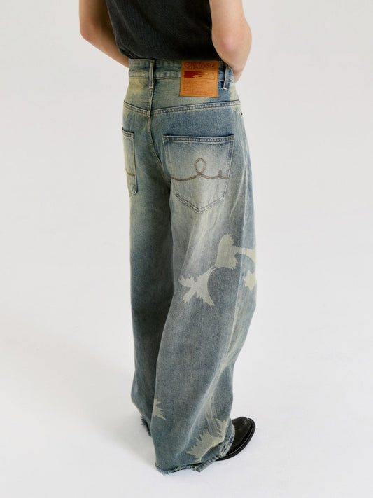 23SS Botanical Leaves Washed Denim Pants [ID:0208PA]