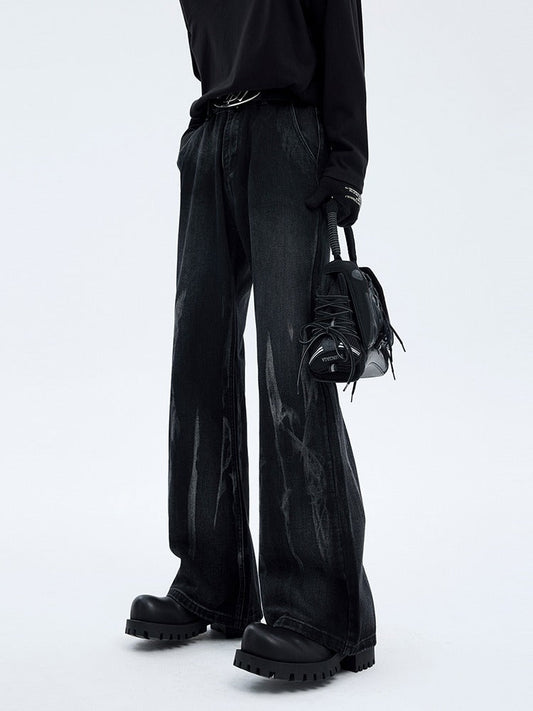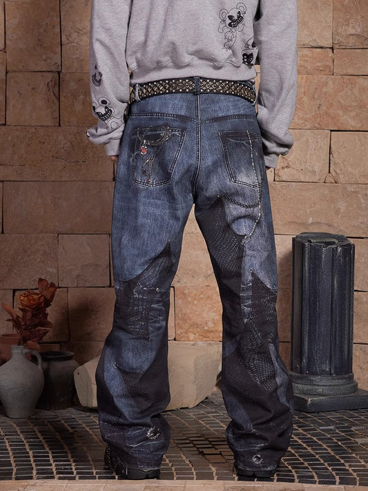 Block Fade Asymmetric Distressed Straight Denim Pants [ID:0210PA]