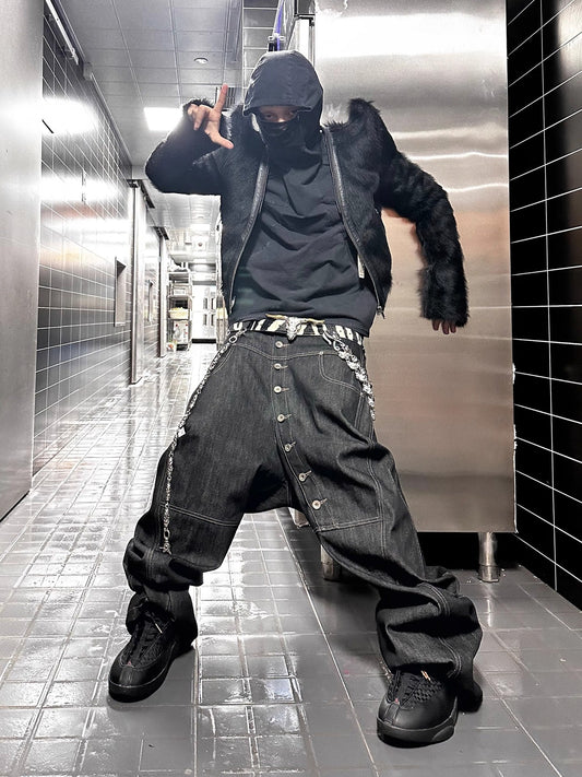 American Vintage Curved Button Denim Raw Edge Flared Pants [ID:0516PA]
