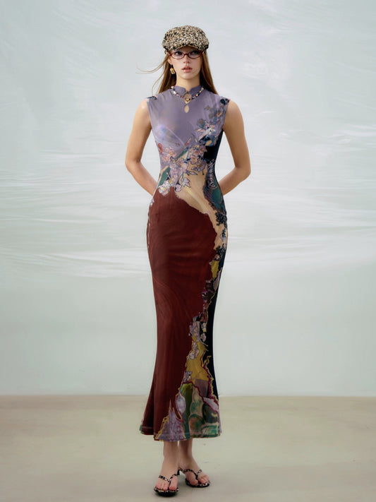 Reversible Block Cheongsam Floral and Mermaid Dress [ID:0452OP]