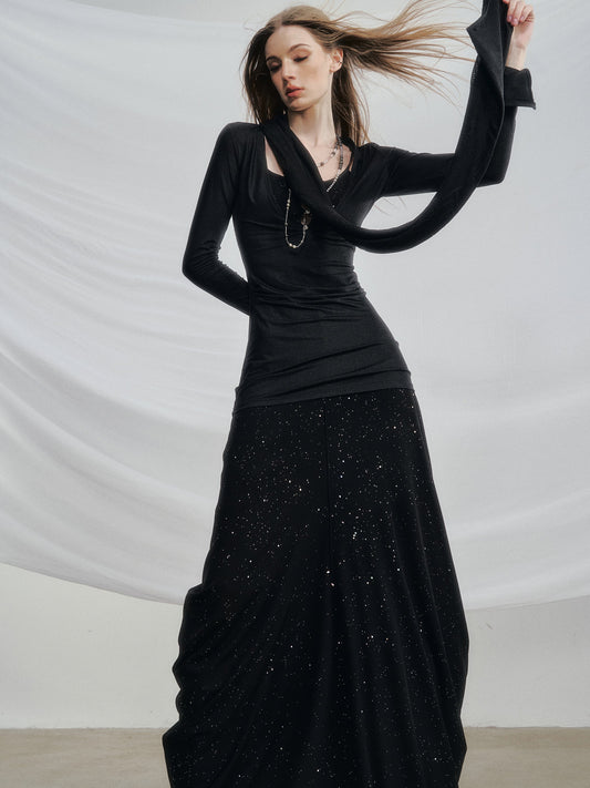 Hollow Bead & Cocoon Shape Top with Relaxed Two-Piece Dress [ID:0453OP]