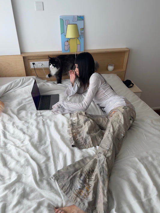 Pure Tencel Cotton Washed Drip Flared Bell-Bottom Pants [ID:0134PA]