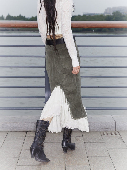 Corduroy Layered Petal Fishtail Skirt with Elastic Waist and Side Slit [ID:0135SK]