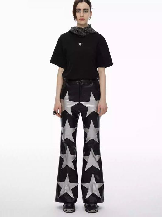 High-Waist Leather Pants with Pentagram Stretch Flare [ID:0138PA]