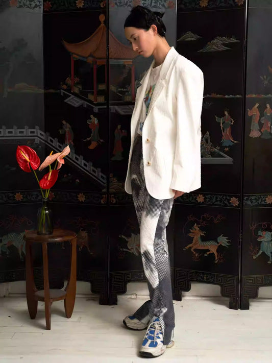 High-Waist Cotton Wide-Leg Pants with Heart Reflection Print [ID:0137PA]
