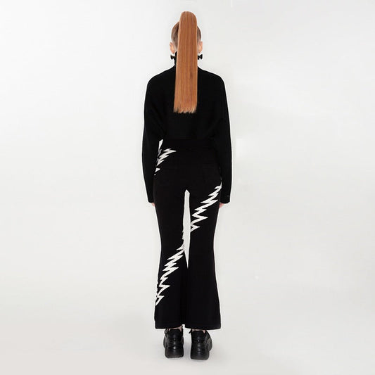 Lightning Embroidery Knit Flare Pants with Monochrome Warmth [ID:0140PA]