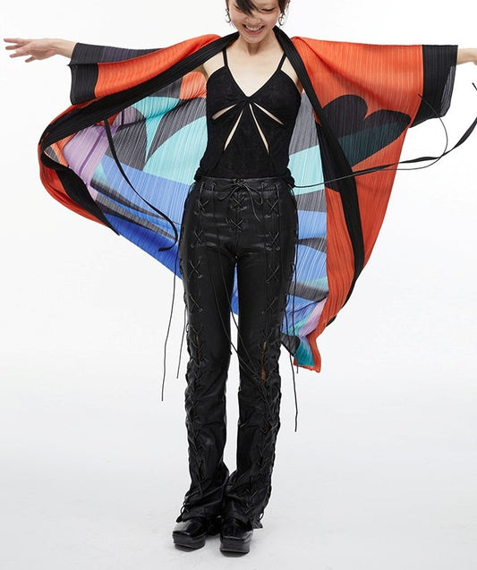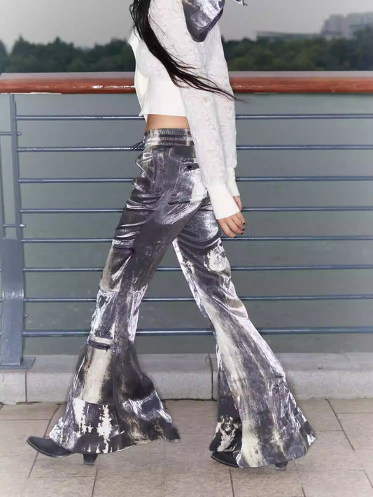 Original Sparkling Satin Tie-Dye Flare Pants Multi-Pockets [ID:0144PA]