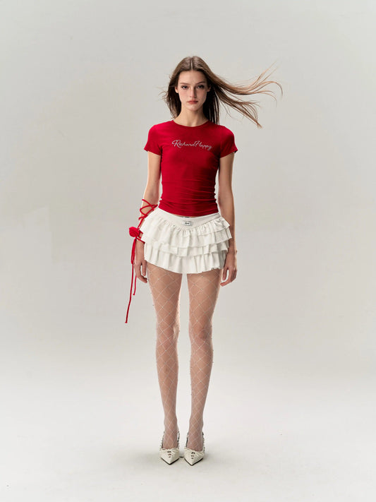 Low Rise Satin Pleated Layered Anti-glare Cake Skirt [ID:0475SK]