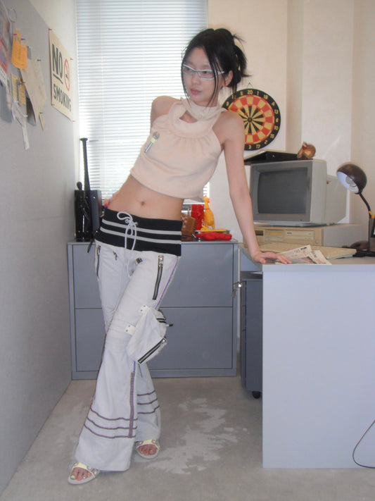 Gray Heavy-Duty Zipper Pocket Low-Waist Cargo Pants [ID:0447PA]