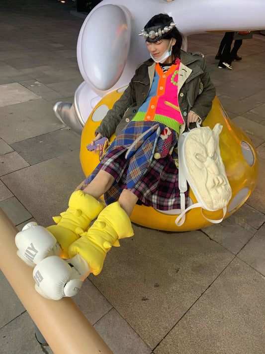 Meteor Hammer Rivet Plaid & Chick Yellow Padded Sock Sleeve [ID:0448SO]