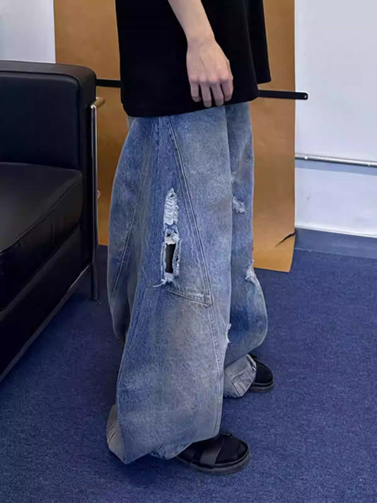 Capper Vintage Wash Distressed Oversized Denim Pants [ID:0408PA]