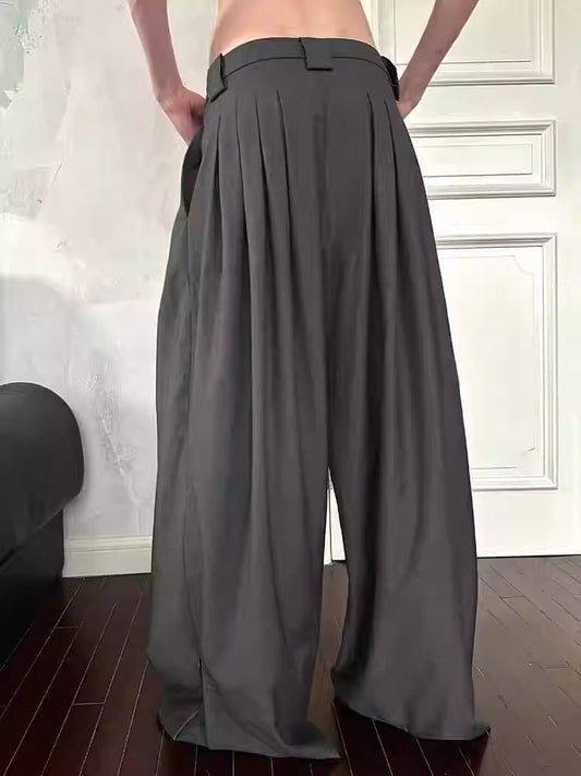 Gray Wide-Leg Pleated Relaxed Casual Trousers [ID:0411PA]