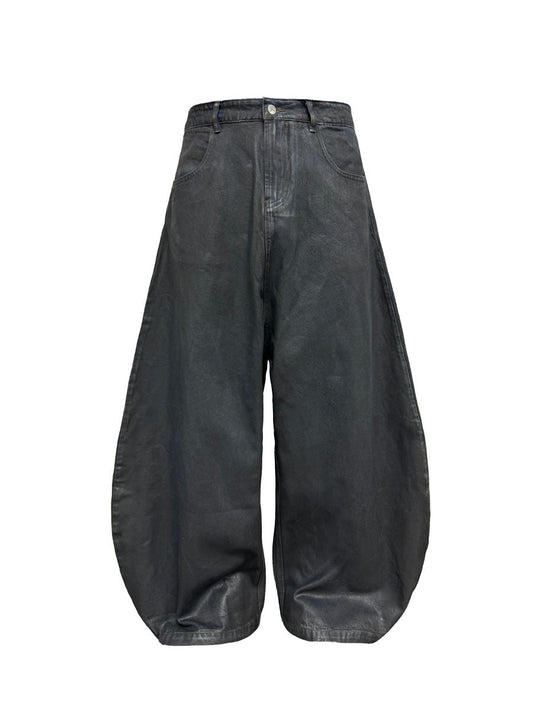 Low Crotch Waxed Curved Blade Washed Wax Denim Pants [ID:0526PA]