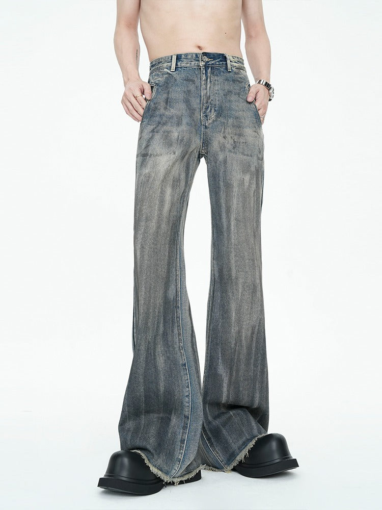 American Vintage Street Style Distressed Washed Long Flared Pants [ID:0227PA]