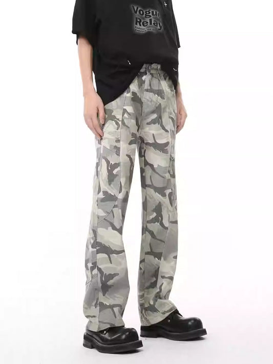 Original Design Camouflage Patchwork Mid-Rise Straight Jeans [ID:0178PA]