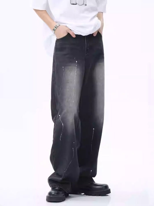 Unique Splatter Wash Mid-Rise Loose Straight Jeans [ID:0179PA]
